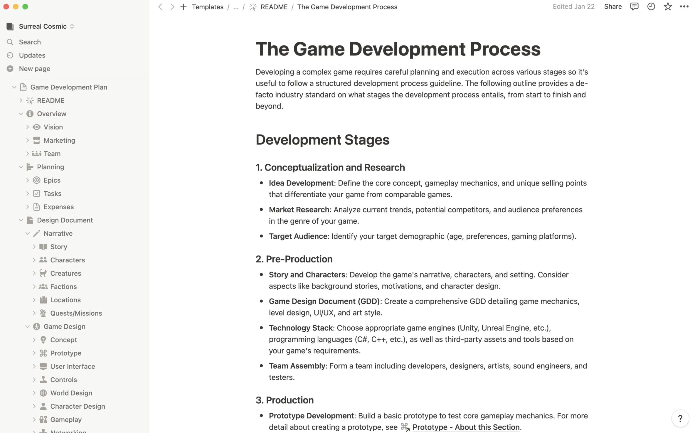 More details at https://surrealcosmic.com/projects/game-development-plan-notion-template/